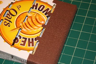 Next, I placed the second half of the cereal box inside the first one, matching the angle of the first box. I left a 1/2-inch gap between the two boxes and glued it in place. I didn't put any spacers between the two box parts, but would probably suggest it if your little one might be a little rough with the finished product.